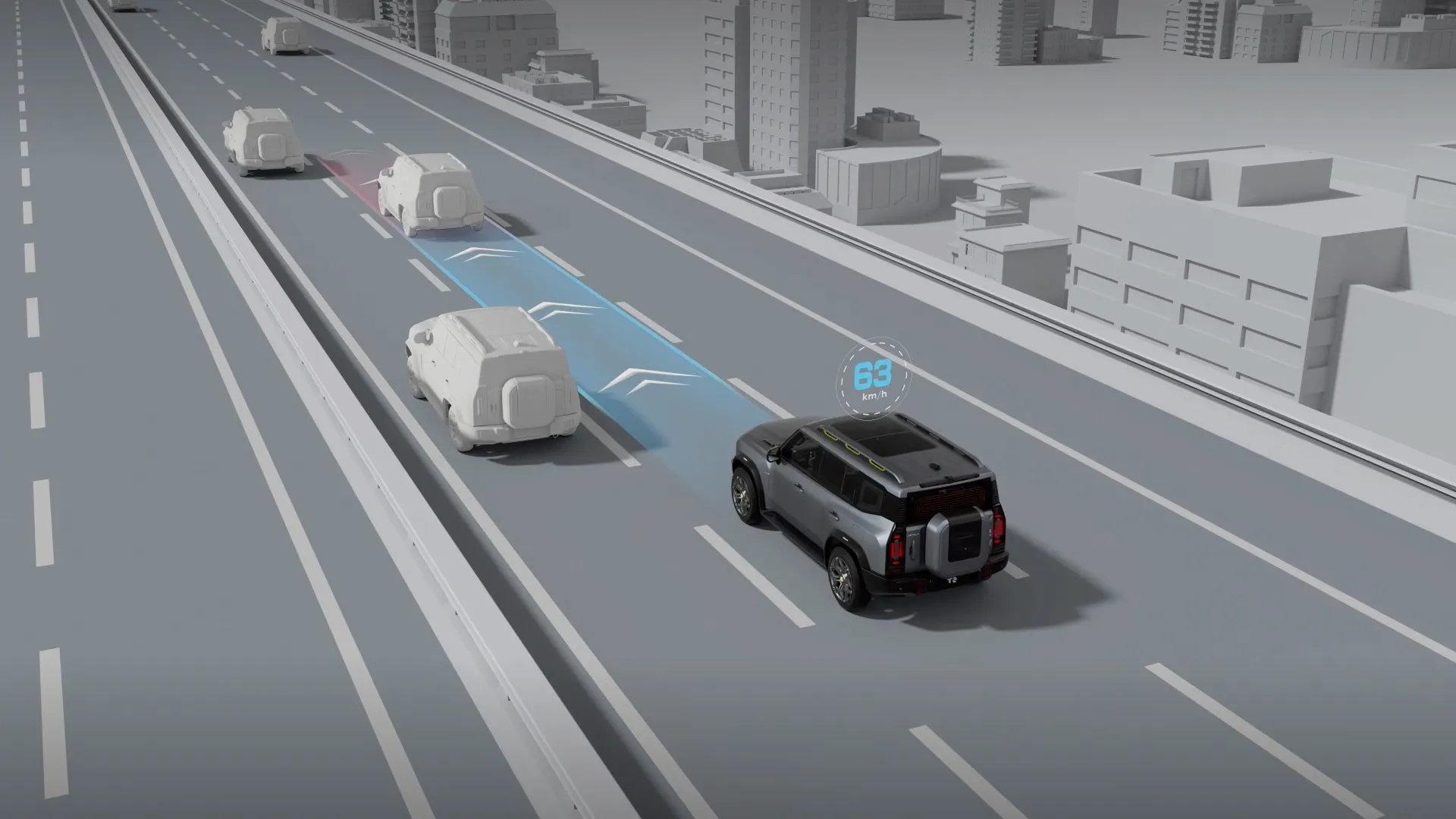 Модель T1 воплощает актуальные тренды автомобильной индустрии: цифровизацию интерьера, продвинутые системы помощи водителю и эффектный дизайн экстерьера. Передняя часть оформлена в стиле «звёздного неба» с интегрированной светодиодной подсветкой решётки радиатора.