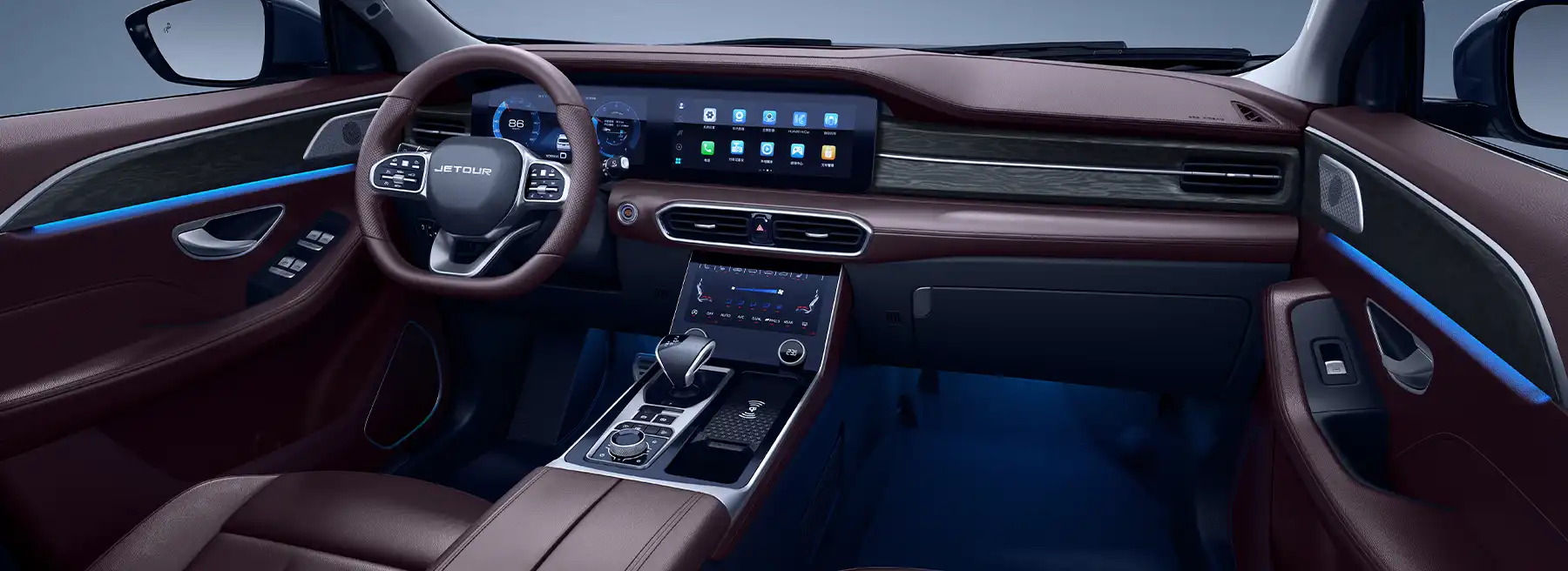 Система очистки воздуха с фильтром стандарта CN95 удаляет до 95% мелких частиц и аллергенов. Эта функция особенно актуальна для жителей столицы в периоды повышенной загазованности. Атмосферная подсветка салона дополняет общее впечатление от интерьера, создавая комфортную обстановку в тёмное время суток.